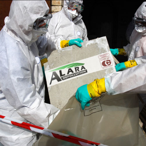 Entreprise spécialisée dans le retrait de l’amiante en place, ALARA DEPOLLUTION dispose d’équipes compétentes et de matériel spécifique lui permettant également d’intervenir sur tout type de travaux de désamiantage.